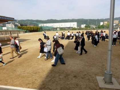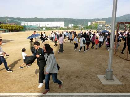 子どもたちは、点呼ができたところで、来校された保護者の方々と一緒に下校しました。