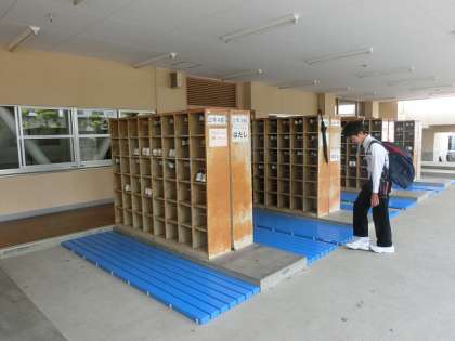 また、卒業生が寄贈してくれた蒼いすのこは靴を脱ぐことを徹底しています。
