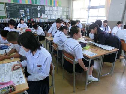 2年生は林間学舎に向けて、行き先のリズ確認をしていました。