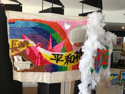 去年の千羽鶴奉納作品が平和宣言とともに展示されていました。