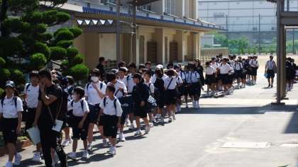 楽しみにしていた校外学習です。一人の欠席もなく地域の方々に見送られ元気に出発しました。