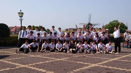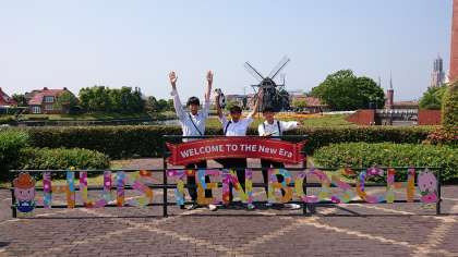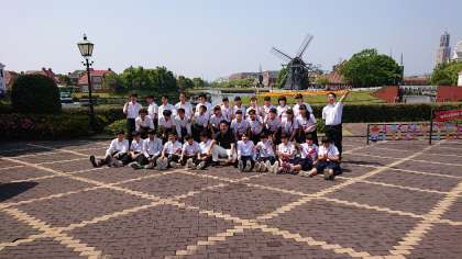 ハウステンボスで集合写真を撮り、班別研修開始です。