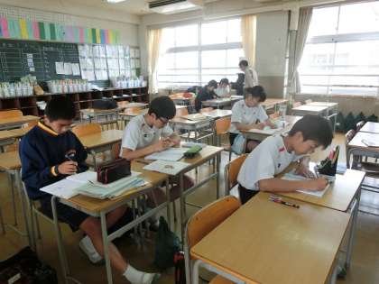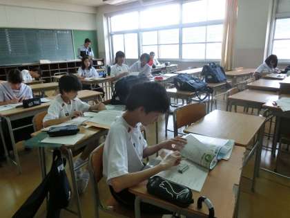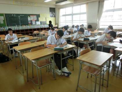 1年生は、人数が多いので、場所を2クラスに分けています。