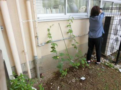 緑のカーテンとまではいかないまでも、大きく成長してくれたらなぁと願っています。