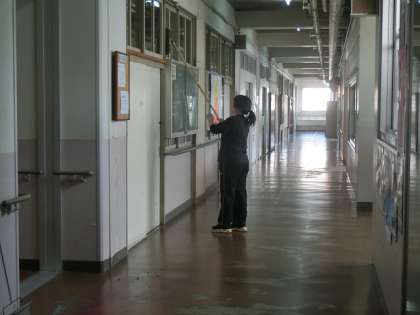 校務員さんは、毎日廊下の掃除をしてくれています。
