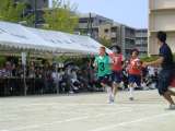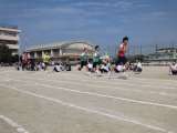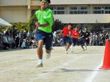 400m走はグラウンド2周。 クラスの声援を受けて全力疾走です。