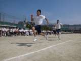 3年生男子・学級対抗リレーでは先生チームも出場しました。 盛り上がりました。