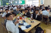 仲間と食べるお弁当は、また格別のようです。どのクラスの生徒も実にいい表情をしてい...